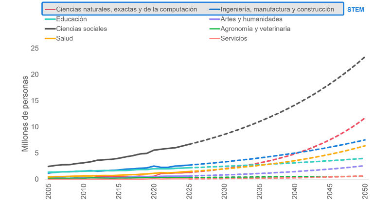 El IMCO estima que México necesitaría 137% más egresados STEM rumbo a 2050 para responder a la demanda de talento en sectores estratégicos como tecnologías de la información, energía, salud, manufactura avanzada e inteligencia artificial.