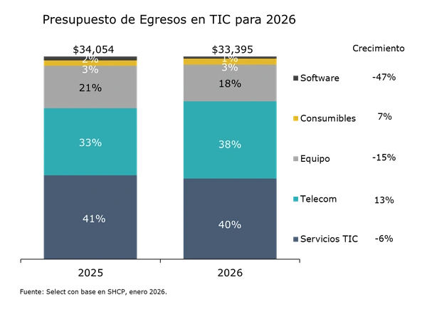 Aunque el presupuesto global se ajusta, algunas dependencias muestran crecimientos relevantes en su gasto TIC para 2026: