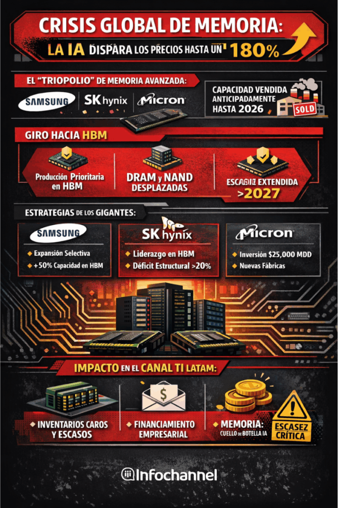 La transición a HBM está canibalizando la oferta tradicional; El déficit se extenderá hasta 2027 en algunos segmentos; El canal en México enfrenta presión, pero también nuevas oportunidades de especialización