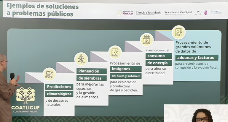 Durante la presentación, la presidenta Claudia Sheinbaum destacó que Coatlicue permitirá resolver problemas públicos que requieren procesamiento intensivo de datos. Sus primeras aplicaciones estarán enfocadas en: