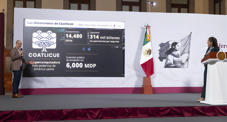 México presentó la supercomputadora Coatlicue, una infraestructura de 14,480 GPUs que busca posicionar al país como líder en cómputo de alto desempeño en América Latina y habilitar aplicaciones estratégicas en IA, energía, clima, Pemex y combate a la corrupción.
